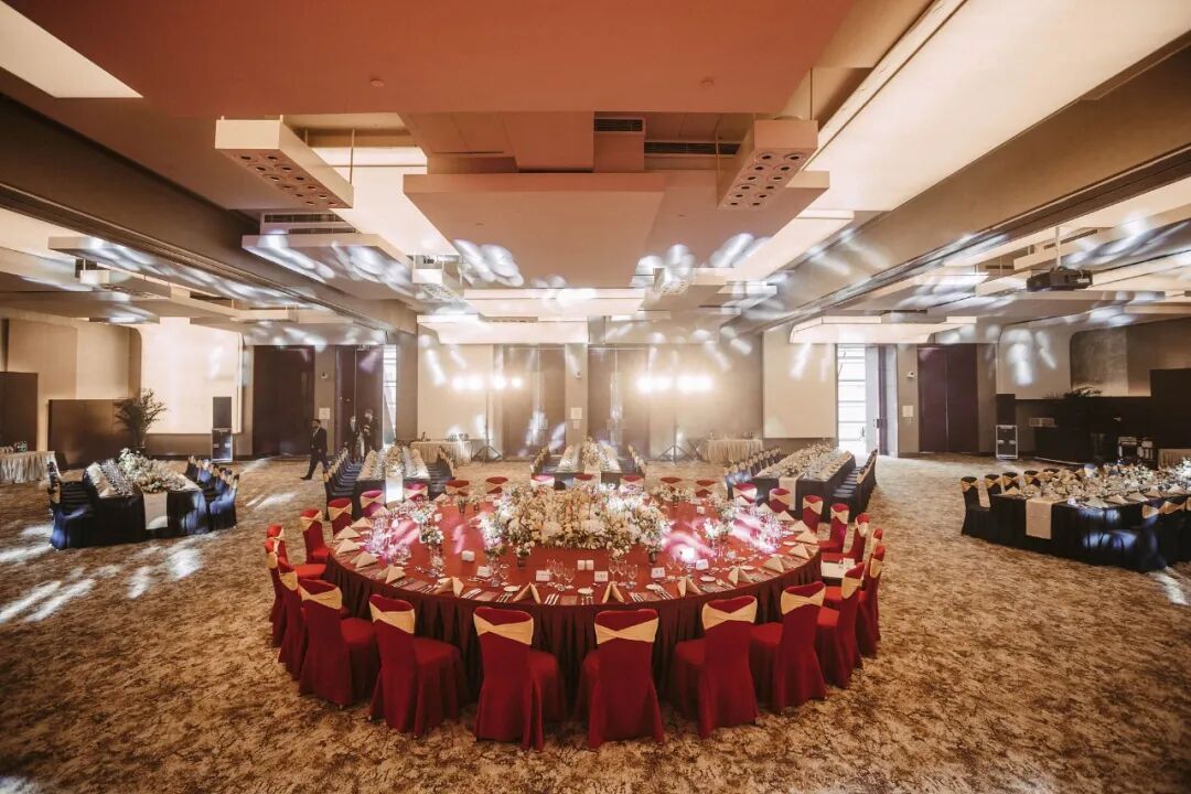 璀璨鎏金搭配典雅朱红,柔和饱满的色彩烘托出整场精致设计的晚宴。暖色系桌花在细节之处倍添精彩,一脉传承洲际酒店精致得体与高雅尊贵的文化精髓。