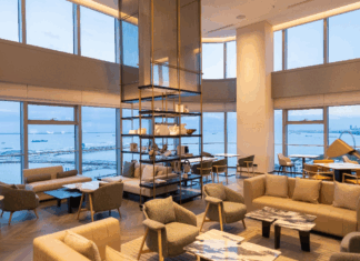 在采悦轩中餐厅,品鉴创意湖州本地菜。以湖州丝绸印制的菜单别出一格;安吉白茶冲浪牛肉以高汤速焖白茶、牛肉和香米,香气四溢,回味无穷;9.2斤重的大白鱼堪称壮观,鲜香味美;石烹M9和牛肉将西式味道本地化,鲜嫩多汁入口即化;白米虾、银鱼、鳝鱼都在传统制作方法上推陈出新,一菜两做,别出心裁。道道菜式都显示了高超的烹饪技巧,让人印象深刻。