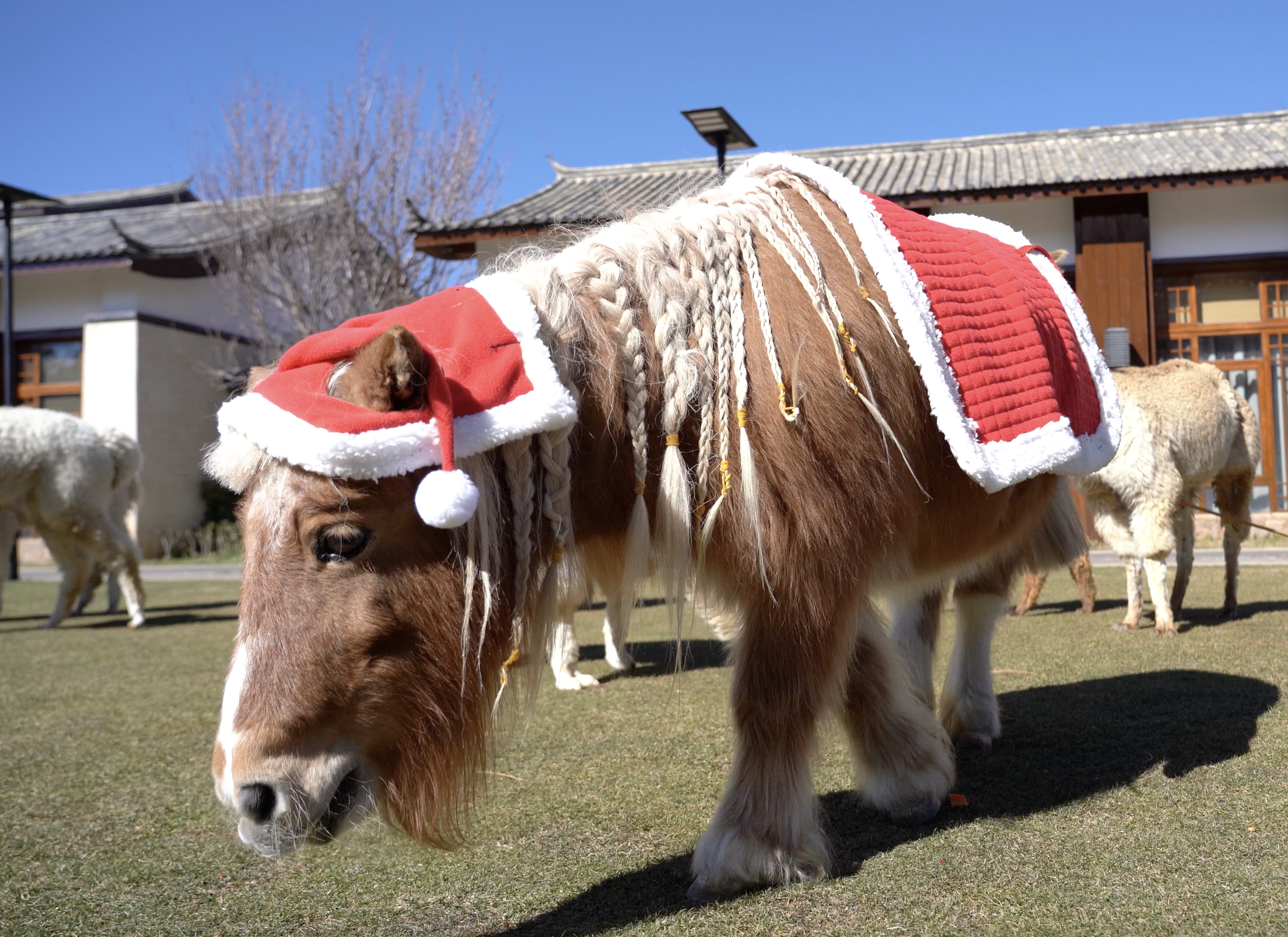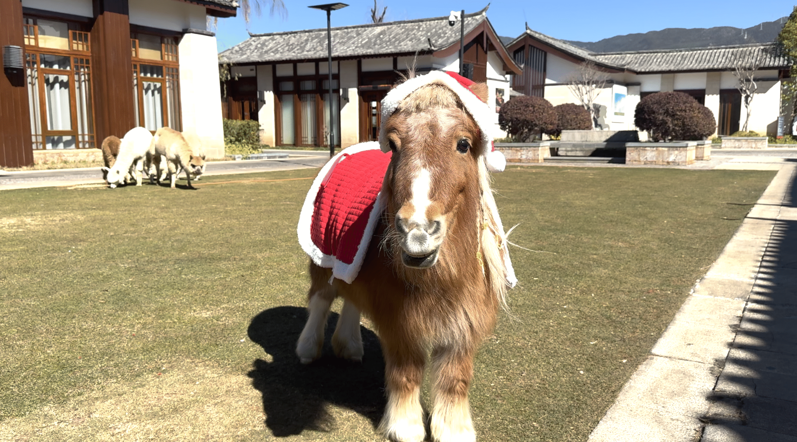 以清晨的“日照金山”开启新一天的旅程。每日清晨,客人可在酒店内观赏玉龙雪山“日照金山”的壮丽景色;或在清晨打开窗帘,在酒店雪山观景房的露台即可足不出户见证光辉一刻,迎接清晨第一缕阳光。日间,与家人在新春游园会现场,可购买游园会通用货币“小元宝”,用来体验写春联、写福字、甲马拓印、绘制东巴图腾、树皮冰箱贴DIY,兑换小马钥匙扣,以及转盘抽盲盒、投壶、玩偶套圈等游戏,重现年节欢乐记忆。还可至酒店湖心亭体验捏瓦猫、皮具挂件制作、唐卡绘画等项目。还有“萌宠贺岁”,小矮马、羊驼一家、小香猪齐聚游园会现场,与客人互动。2月17日年初一,更有小矮马本命年生日会活动,小朋友们一起为它制作胡萝卜蛋糕。午后更可泛舟湖上,或漫步园林欣赏初春的花草,搭配春节主题下午茶,享受静谧时光。